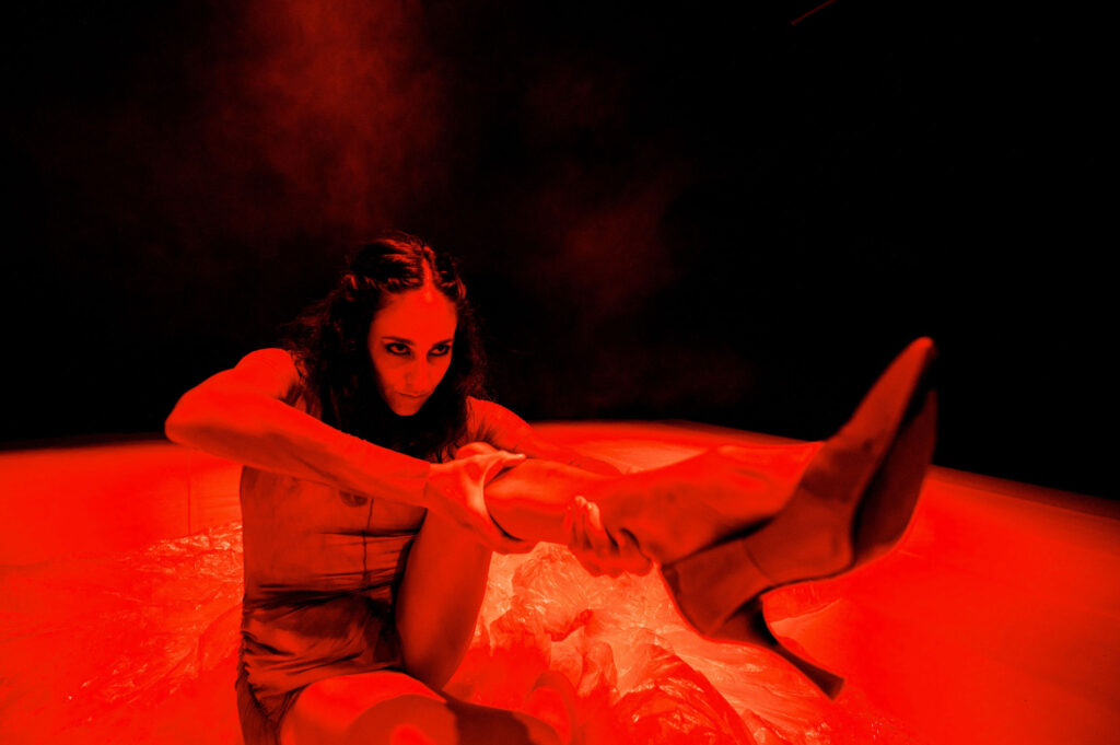 Un único elemento escenográfico —una bolsa plástica circular de tres metros— funcionó como vestido, superficie líquida y contenedor fúnebre. Este dispositivo, diseñado por Oyervides, detonó una coreografía cargada de símbolos y preguntas abiertas.