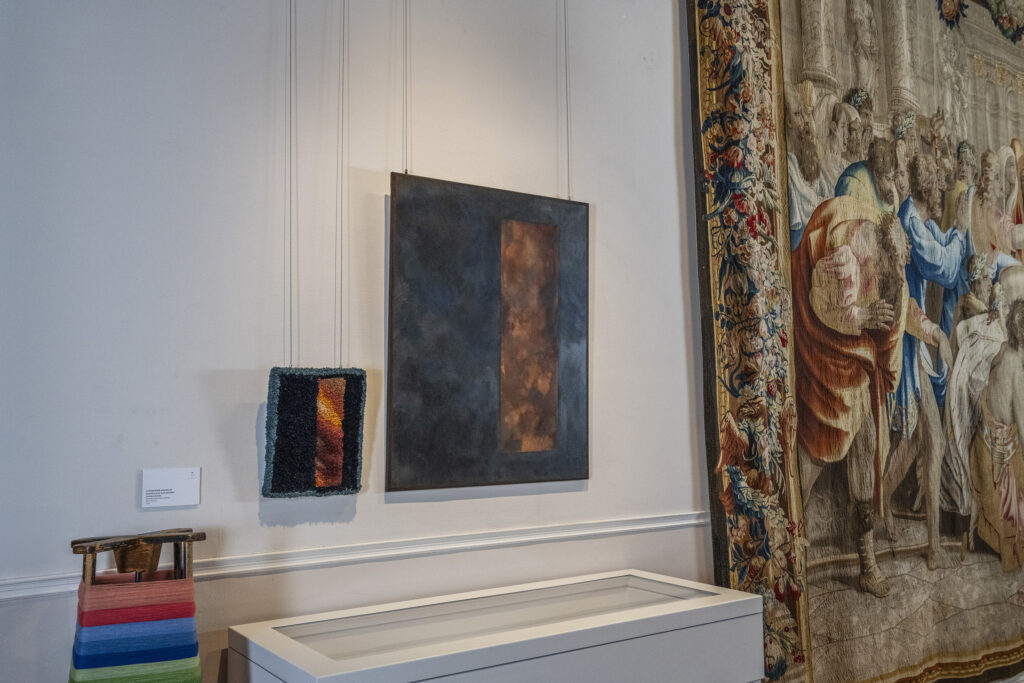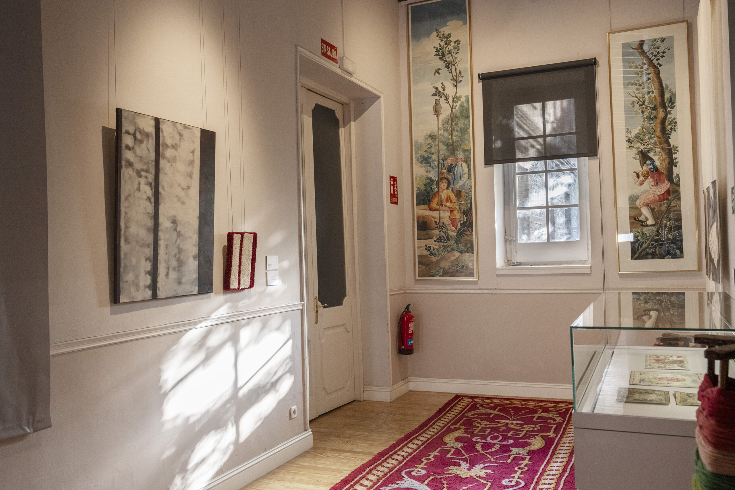 La exposición presentó 23 obras que abarcaron desde composiciones textiles realizadas con fragmentos de alfombras históricas, hasta pinturas sobre lienzo, esculturas en resina y papeles preparatorios de la propia Fábrica.