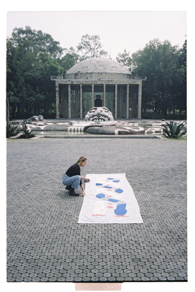 Inspirada en la figura de Coatlicue, símbolo mexica de la vida y la muerte, Devoción Terrenal exploró la coexistencia de los opuestos a través del textil, reinterpretando a la diosa no desde su relato mitológico, sino desde su esencia filosófica. La instalación desmembró su forma para reconstruirla como un principio universal: el ciclo constante de creación y disolución.